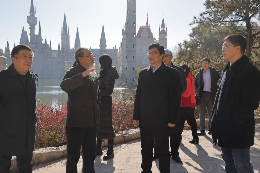会后,张力校长一行在河北美术学院校领导的陪同下实地考察了该校红色文化情景园、民俗墙、鸡鸣城、文峰塔非遗展厅等,游览途中双方就校园规划建设、教育教学、党建思想政治教育工作等进行了深入交流。