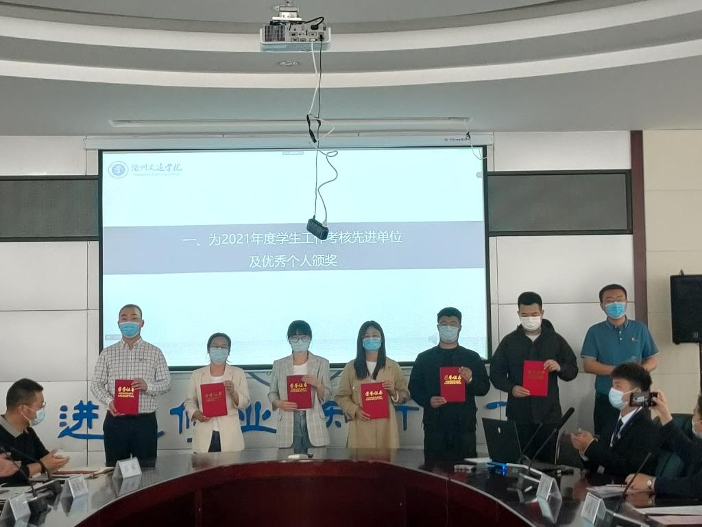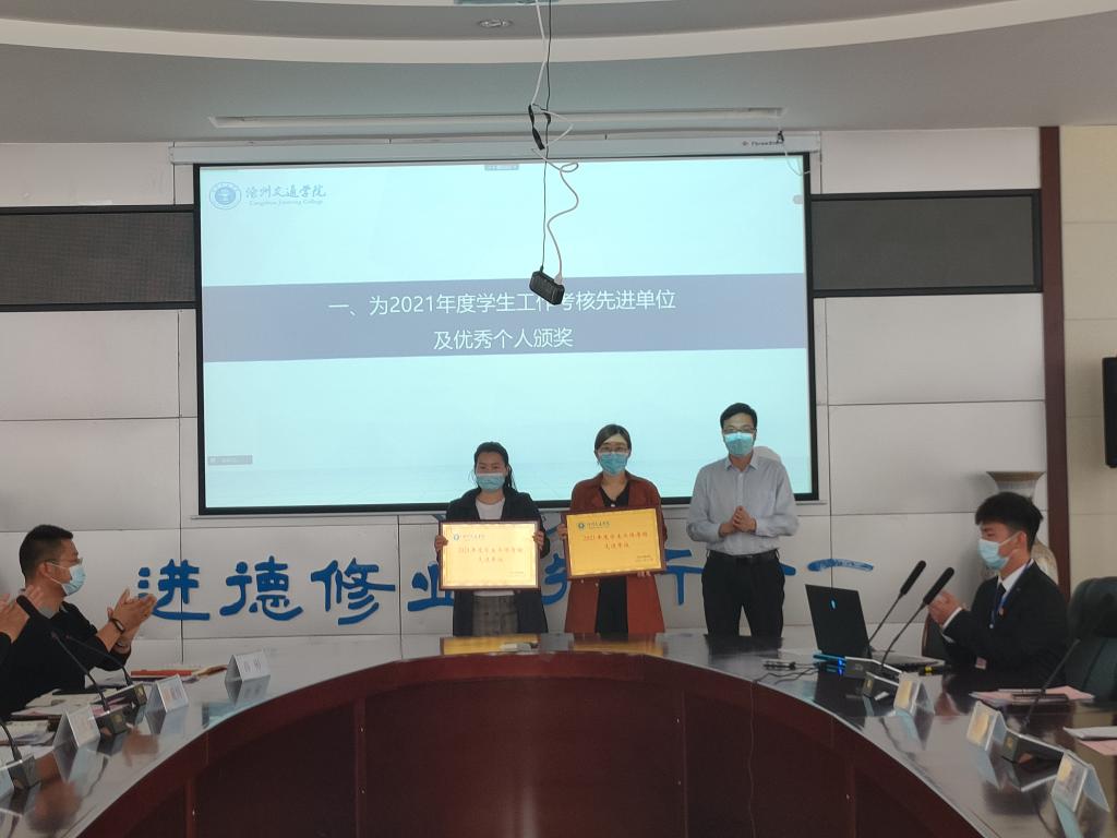 会上,党委副书记吴立军为2021年度学生工作考核先进单位颁奖。