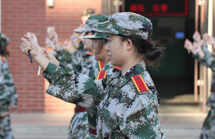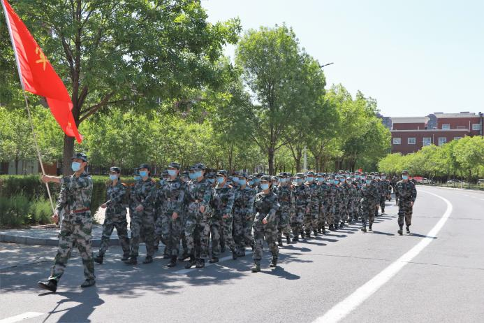 步调一致、整齐划一,坚定的摆臂、整齐的步伐、嘹亮的口号无不彰显出2021级学子热情的精神面貌。