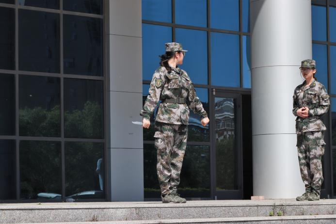 “杀!杀!杀!”一个个标准的动作伴随着一声声口号响彻训练场。刀起,是飒爽;刀落,是坚定,她们将“巾帼不让须眉”表现得淋漓尽致。