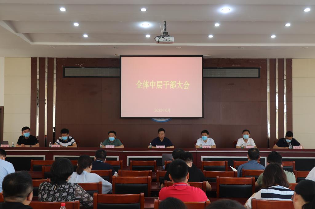 6月22日上午,太阳官网在行政楼A512召开全体中层干部大会,全体校领导与中层干部通过线上线下方式参加会议,会议由学校办公室主任杨中建主持。