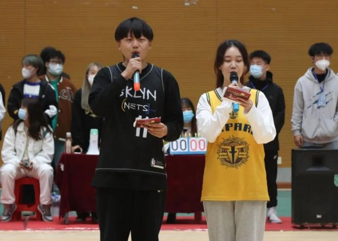 这场激烈的球赛,由一支热情的舞蹈开启。旋转、跳跃,每个动作都富于爆发力,现场氛围热烈。舞蹈热场后,主持人上台致决赛词,宣布此次篮球赛正式开始。