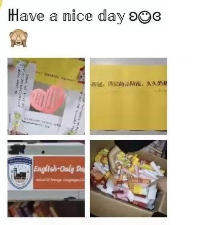英语2210娄晨曦说:“寒风瑟瑟,外院带来丝丝温暖;疫病无情,小小纸条送来阵阵温情。料峭的寒风终将被师生情所化解,疫情的阴霾终将被暖阳所驱赶。越是忙碌的生活,越能被这种小小的温暖滋润心窝。突如其来的小惊喜,不单是收礼物的惊喜,重要的是被关心和用心对待。”