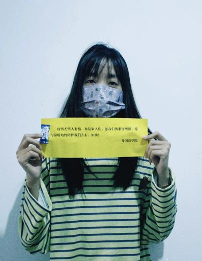 英语2110陈瑜表示,“在寒冷的夜风里,一个盲卷,温暖了每个人的心。它如同凛冽冬夜中的手炉,徐徐地把温暖送到每个人的手中。老师们的关怀,同学们的关爱,让我们不再对疫情感到恐惧,让我们更加坚定了战胜疫情的决心!”
