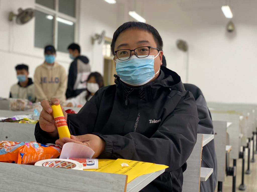 英语2108吴敏说:“盲卷的出现让我们在做完核酸后有了一丝惊喜,上面的字温暖了我们的心,小零食也很好吃,感觉甜到了心里。愿疫情早点过去,愿我们所遇皆安!”