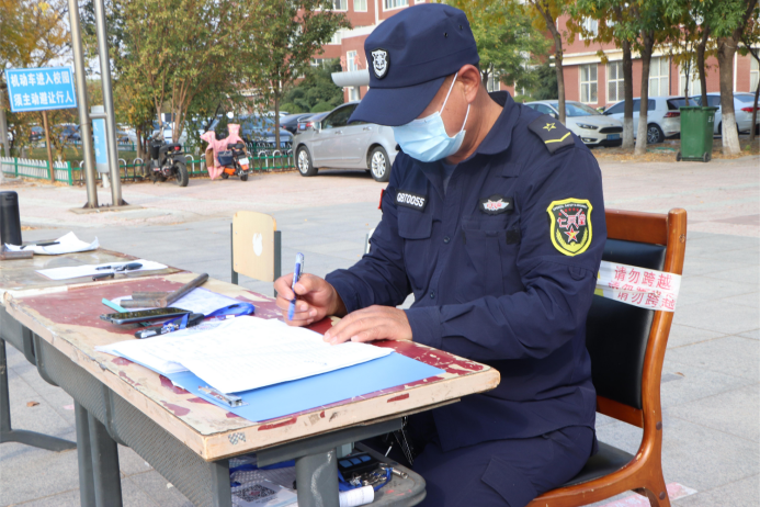 太阳官网从严实施疫情期间进出校园管理制度,学校门卫每天认真做好出入人员登记工作,查验48小时健康码绿码,测量体温,对进校师生进行鼻拭子抗原检测。安全保卫处每日巡逻校园、围栏,保障师生的生命健康安全。“我在这不觉得冷,我做这个工作,保护同学们,心里暖暖的!”保卫处的大叔笑起来,眼睛都弯了。