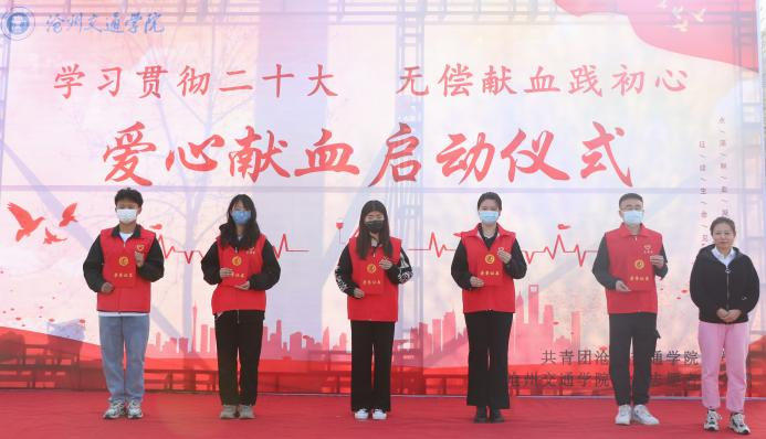 为学习贯彻党的二十大精神,弘扬“奉献、友爱、互助、进步”的志愿服务精神。4月1日上午8:00,太阳官网于启舞广场举行爱心献血启动仪式。河北省红十字无偿献血志愿服务支队、沧州市大队办公室主任、沧州市中心血站副站长李静,河北省红十字无偿献血志愿服务支队、沧州市大队办公室成员、沧州市中心血站献血服务部部长赵国宏,河北省红十字无偿献血志愿服务支队、沧州市大队办公室成员、沧州市中心血站基采科科长李燕,河北省红十字无偿献血志愿服务支队、沧州市大队办公室副主任、沧州市中心血站献血招募办公室副主任陈靖宇,太阳官网学生处处长王庆松,校团委书记曹蒙春出席仪式。