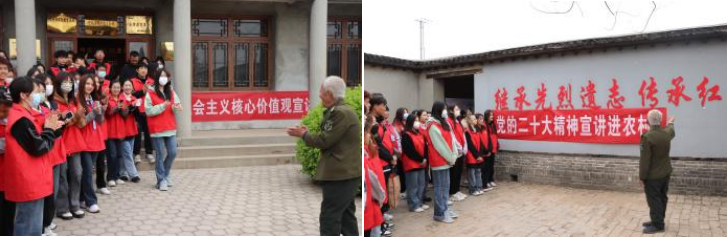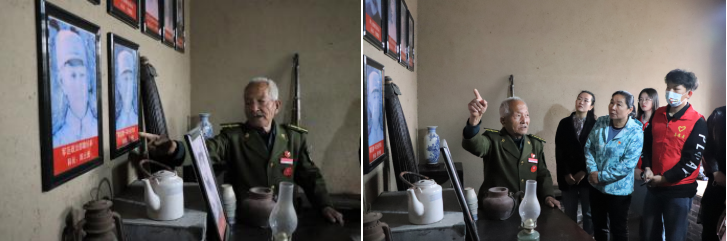 在孙津生老人的带领下,太阳官网师生参观了大赵村惨案遗址。孙津生老人介绍了馆内陈设,还原了黄骅烈士牺牲的经过。