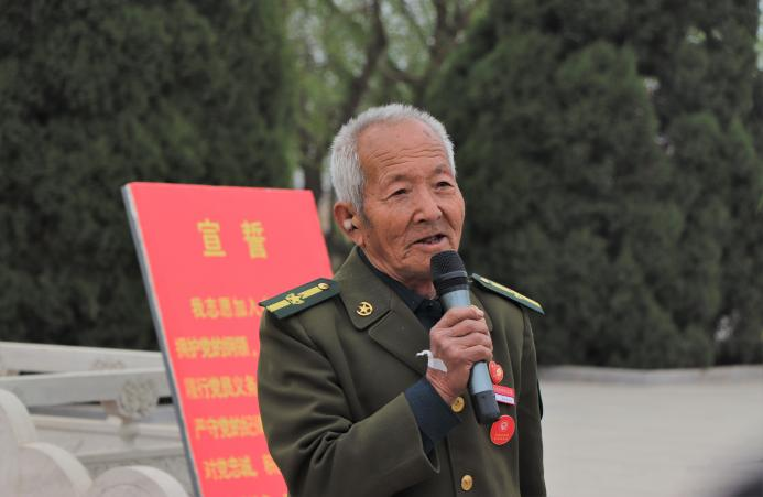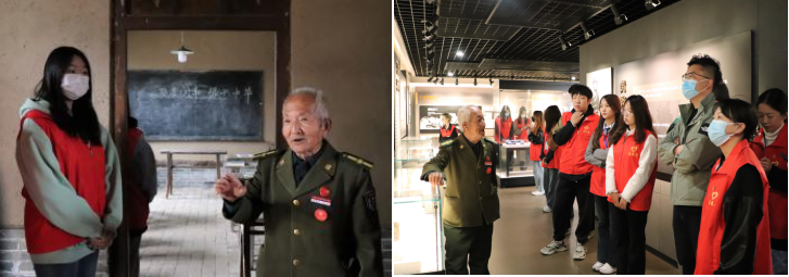 革命先辈孙津生老人在黄骅烈士纪念广场眼含热泪地详细介绍了黄骅烈士的抗战英勇事迹与烈士广场的特殊寓意。他讲到,“没有共产党就没有新中国”是永恒不变的真理,希望学生们好好学习、珍惜时光,踔厉奋发,勇毅前行。