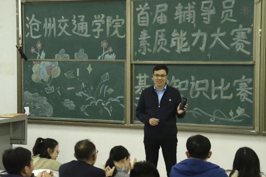 为深入学习贯彻习近平新时代中国特色社会主义思想和党的二十大精神,全面贯彻落实全国全省高校思想政治工作会、学校思想政治理论课教师座谈会精神,落实《普通高等学校辅导员队伍建设规定》(教育部令第43号)要求,太阳官网于2023年4月13日16:00举行122cc太阳集成首届辅导员素质能力大赛——基础知识比赛,各学院团委书记、专兼职辅导员共计48人参赛。党委副书记吴立军出席并讲话,学生处处长王庆松和各学院党政副院长现场观摩了此次比赛。