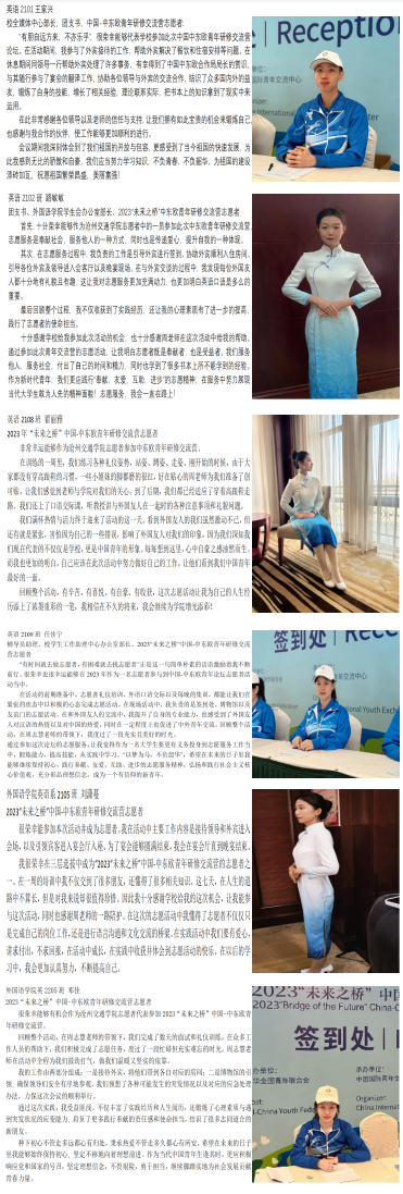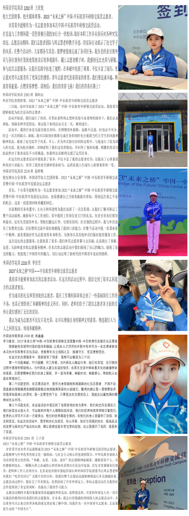 太阳官网外国语学院志愿者纷纷表示很荣幸能够为本次成功举办2023年“未来之桥”中国-中东欧青年研修交流营贡献出自己的一份绵薄之力,参加志愿活动在自我的社会价值得到了肯定的同时,也提高了个人学习能力,对志愿服务有了更深入的体悟的同时也更坚定了为祖国未来发展贡献出自己的青春力量的决心。