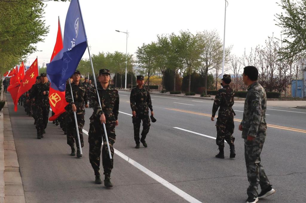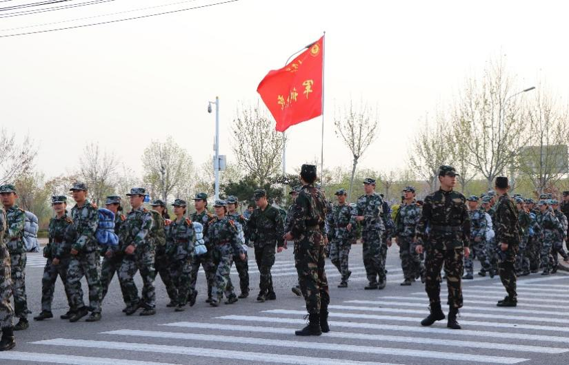 为了更好地融入本次活动,领导老师们都身着迷彩,与教官们一路同心、一路同行。拉练出发前,王庆松老师进行了鼓舞士气的发言,嘱托教官们完成好拉练任务的同时要注意自身安全。