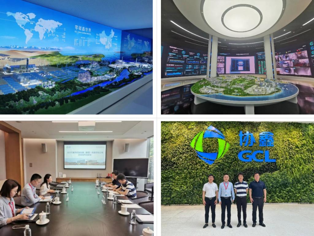 在协鑫集团人才发展总监陈辉的带领下,邵晓康一行参观了公司,了解了协鑫集团的发展历程、企业文化、科研成果、业务板块等。