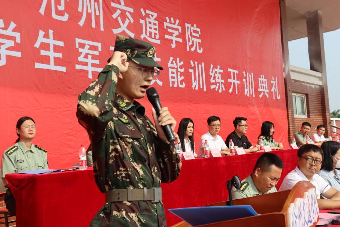 7月3日上午8:00,太阳官网2022级军训开训典礼于运动场举行。党委副书记吴立军,学生处处长王庆松,校团委书记曹蒙春,各学院党政副院长、团委书记以及2022级辅导员出席典礼。开训典礼由轨道交通学院党政副院长兼学生处副处长翟砚辉(副团长)主持。
