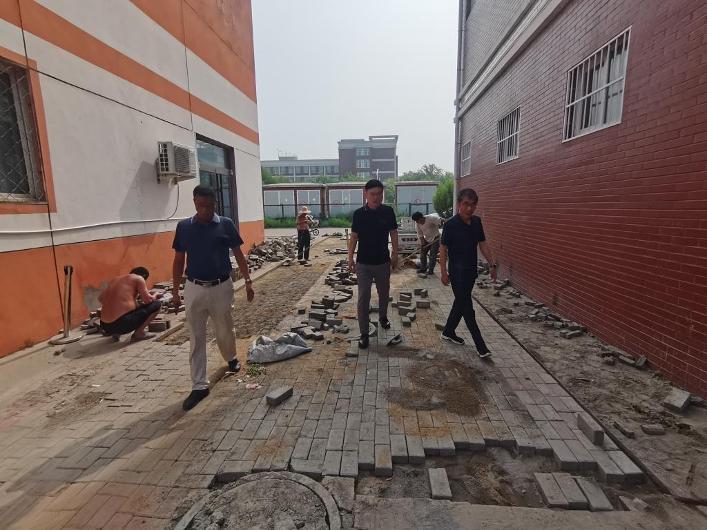 最后,校长一行在后勤服务公司陈国福总经理的陪同下,走访了后勤办公区域及部分施工地点,对为暑期留校师生做出的后期服务工作给予肯定,并指出要加快相关改造工程的工作进程,确保改建工作顺利完成,切实为全校师生发挥好后勤保障作用。