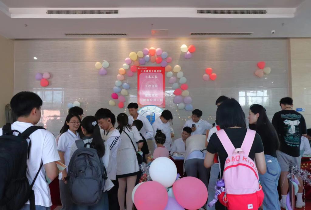 “计信启航,逐梦飞扬”“‘化’样年华,青春闪‘药’”……具有院系特色的创意标语指引着新生的方向;花朵,拱门,2023……各种色彩的气球拼成多种形状,就像新生们未来五彩斑斓的大学时光一样充满无限可能。