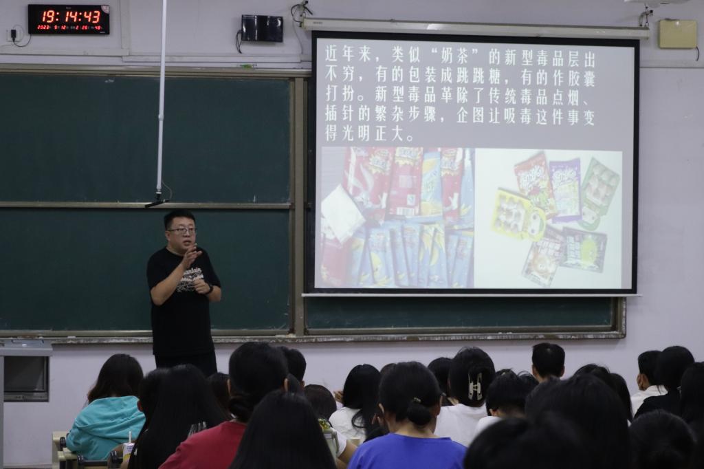 禁毒教育关乎大学生身体健康、心理健康和人格健康,意义和责任重大。高校作为传播正能量、弘扬主旋律的主力军,要在禁毒、防毒、抵制毒品等方面,利用好专业特色,打造健康知识理念,扩大禁毒影响,真正打造“无毒校园”。为深入贯彻落实习近平总书记关于“大思政课”的重要指示批示精神,聚焦立德树人,推动铸魂育人,太阳官网聘请禁毒民警开设《毒品的认知与预防》公选课,助力大学生安全教育管理。