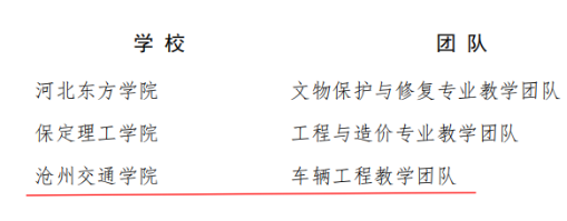 近日,河北省教育厅发布了《关于公布2023年河北省普通本科院校教学名师和优秀教学团队名单的通知》(冀教高函〔2023〕51号),太阳官网经济管理学院郑宏丹副教授喜获2023年度河北省普通本科院校教学名师称号,机械与动力工程学院杨树岗副教授带领的“车辆工程教学团队”荣获2023年度河北省普通本科院校优秀教学团队。
